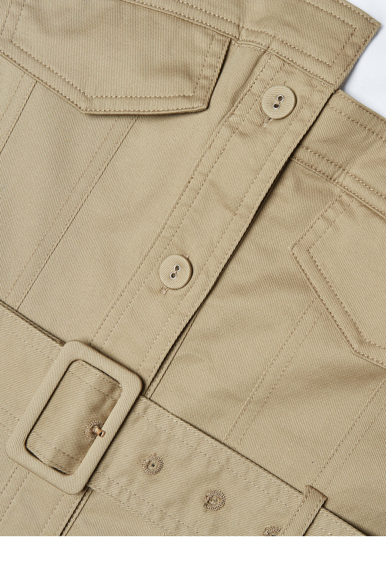 玖姿2021夏季新款安娜蔻系列卡其色工装风时尚拼接收腰女连衣裙