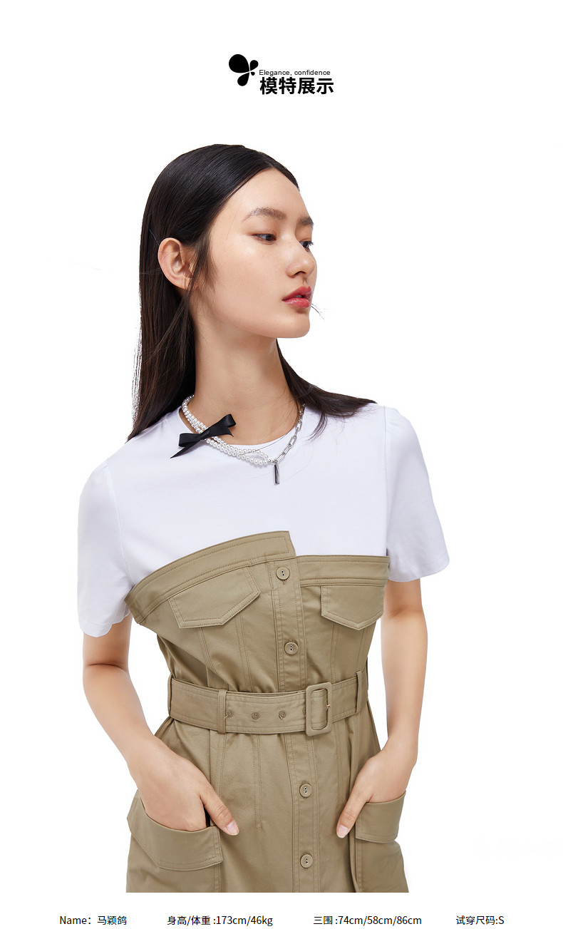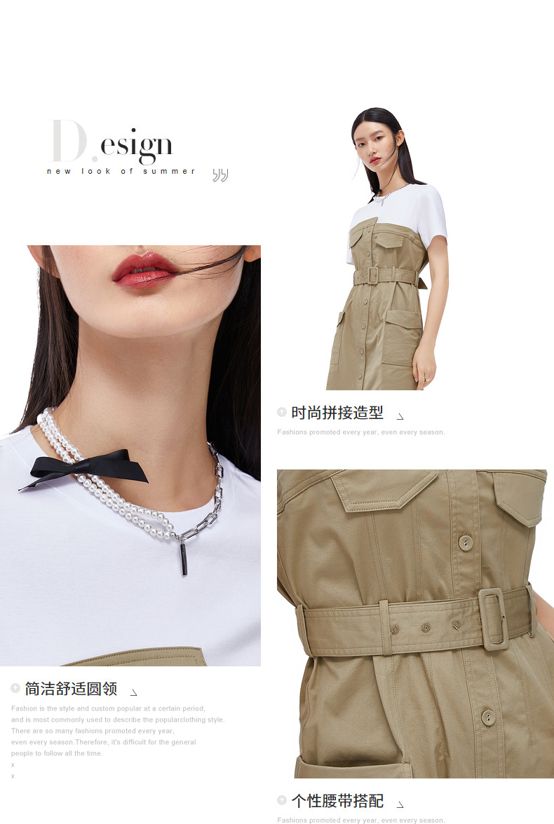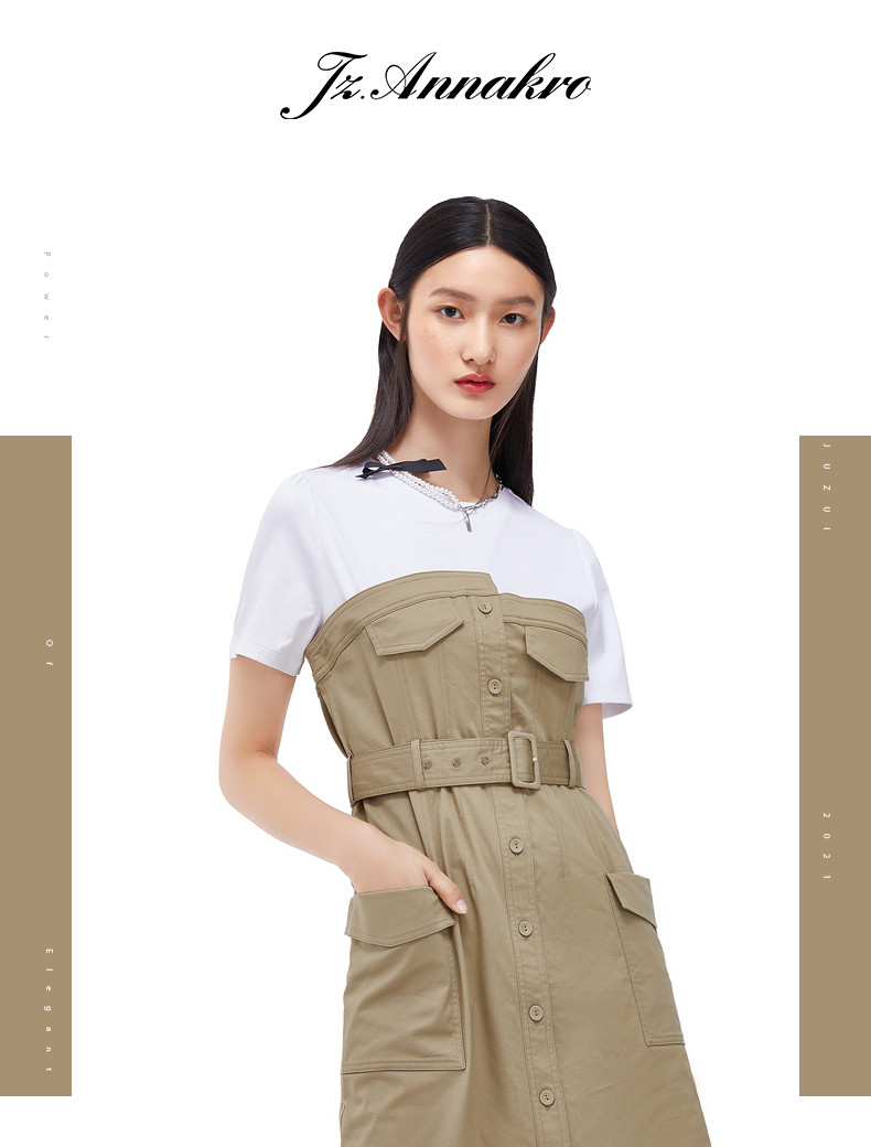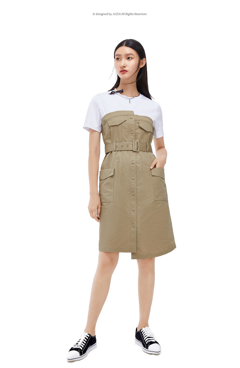 首页 > 玖姿专区 > 玖姿服饰 > 玖姿2021夏季新款安娜蔻系列卡其色工装风时尚拼接收腰女连衣裙
