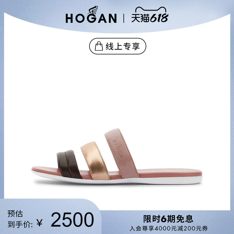 【线上专享】HOGAN女鞋2021春夏新款金色皮革凉拖外穿拖鞋