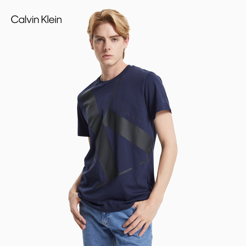 CK Jeans 2021春夏新款男装不规则大LOGO印花圆领短袖T恤J318471