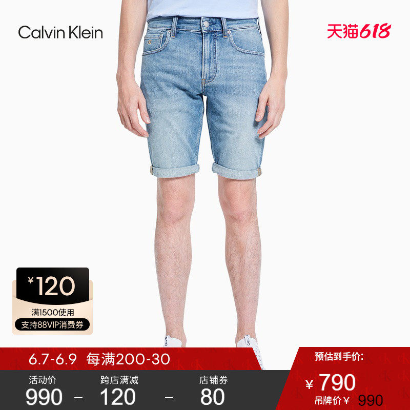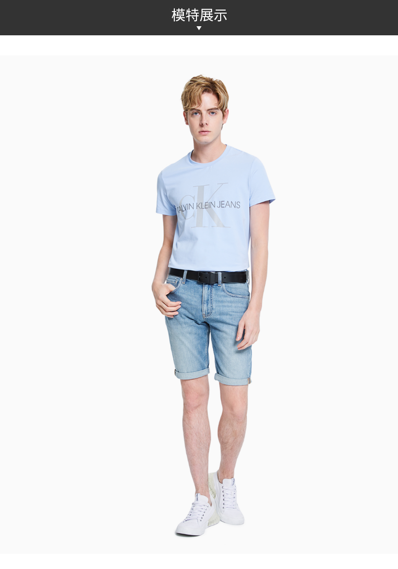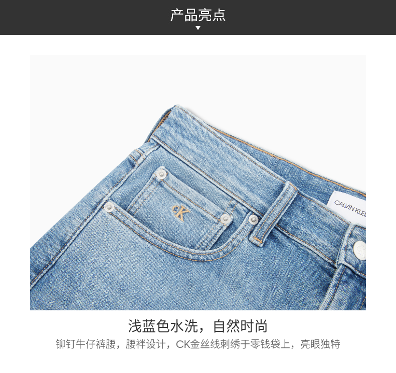 CK Jeans 2021春夏新款男装浅蓝色水洗经典时尚短款牛仔裤J319517