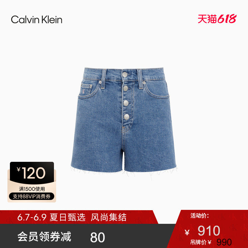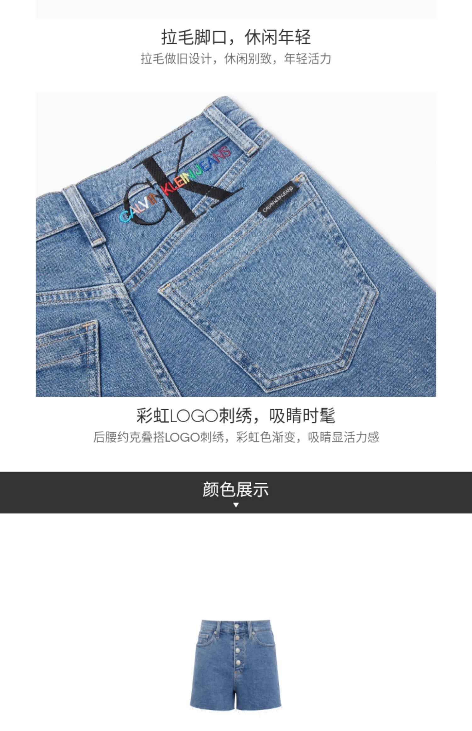 【彩虹系列】CK Jeans 2021春夏新款女装铆钉扣牛仔短裤J217222