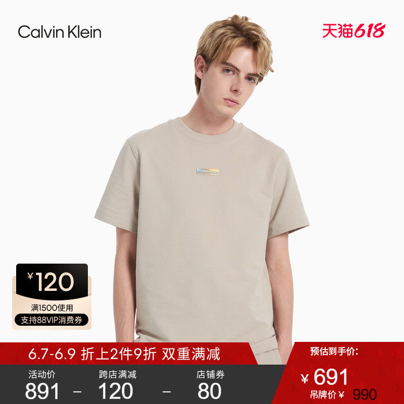 CK Jeans 2021春夏新款男装时尚镭射光感LOGO圆领短袖卫衣J319644