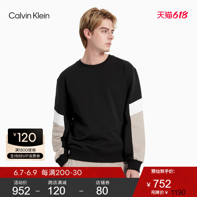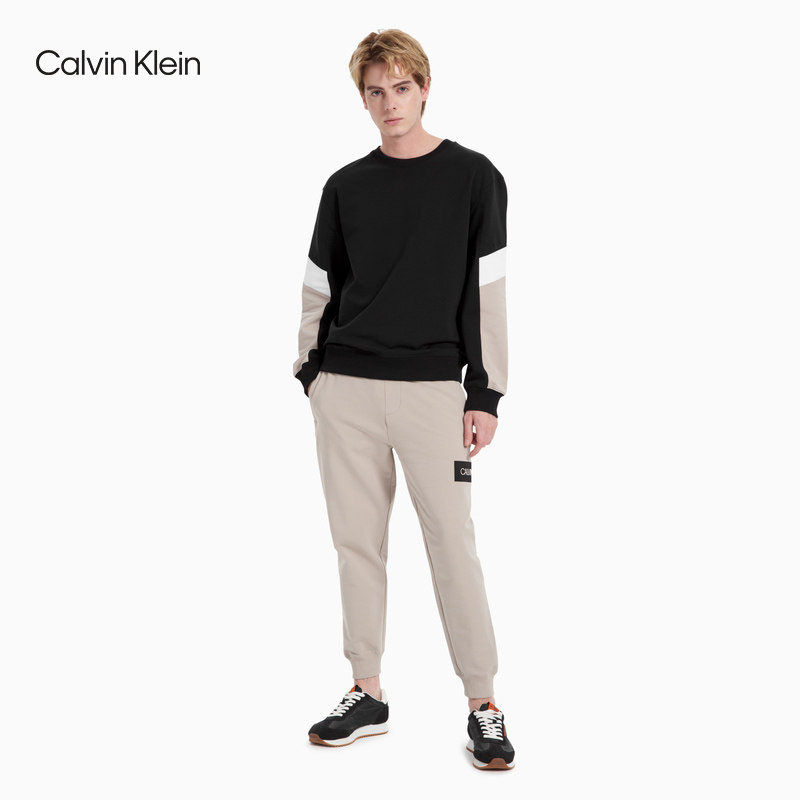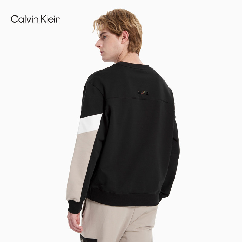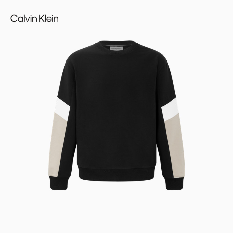CK Jeans 2021春夏新款男装罗纹圆领套头拼接设计长袖卫衣J400105