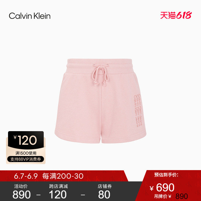 CK Jeans 2021春夏新款女装抽绳竖排LOGO刺绣休闲针织短裤J217604