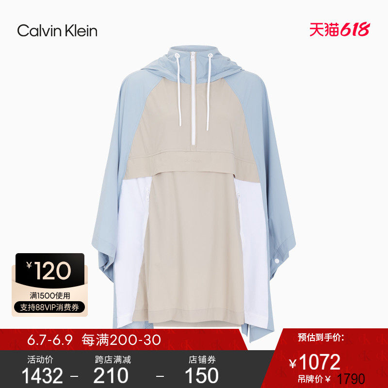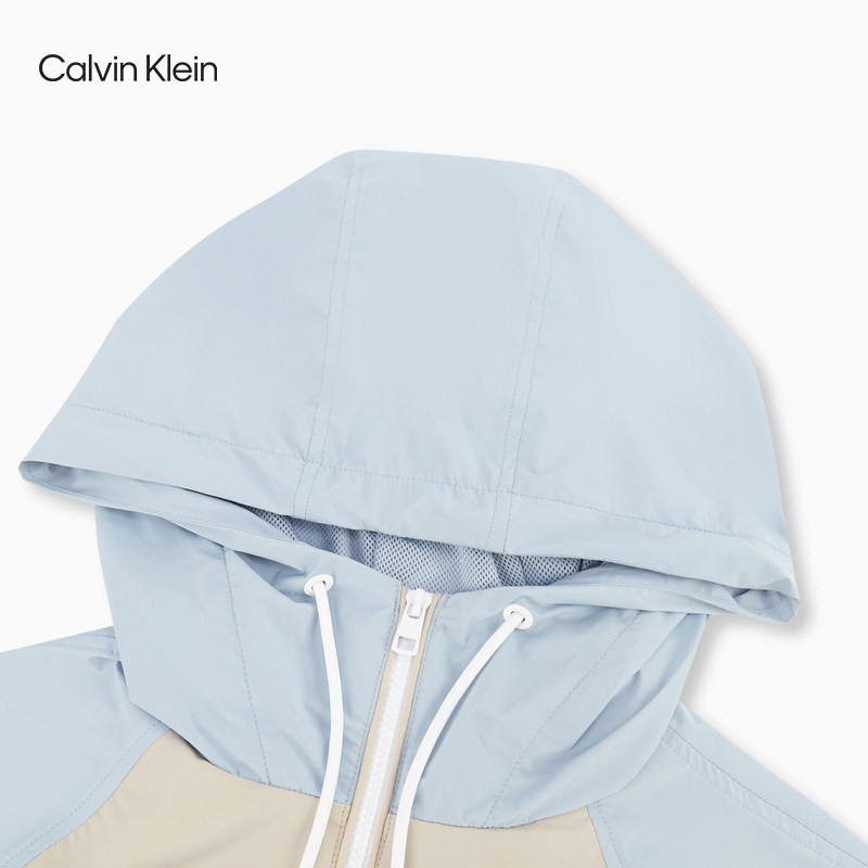 CK Jeans 2021春夏新款女装连帽拉链半门襟拼接中长款夹克J217634