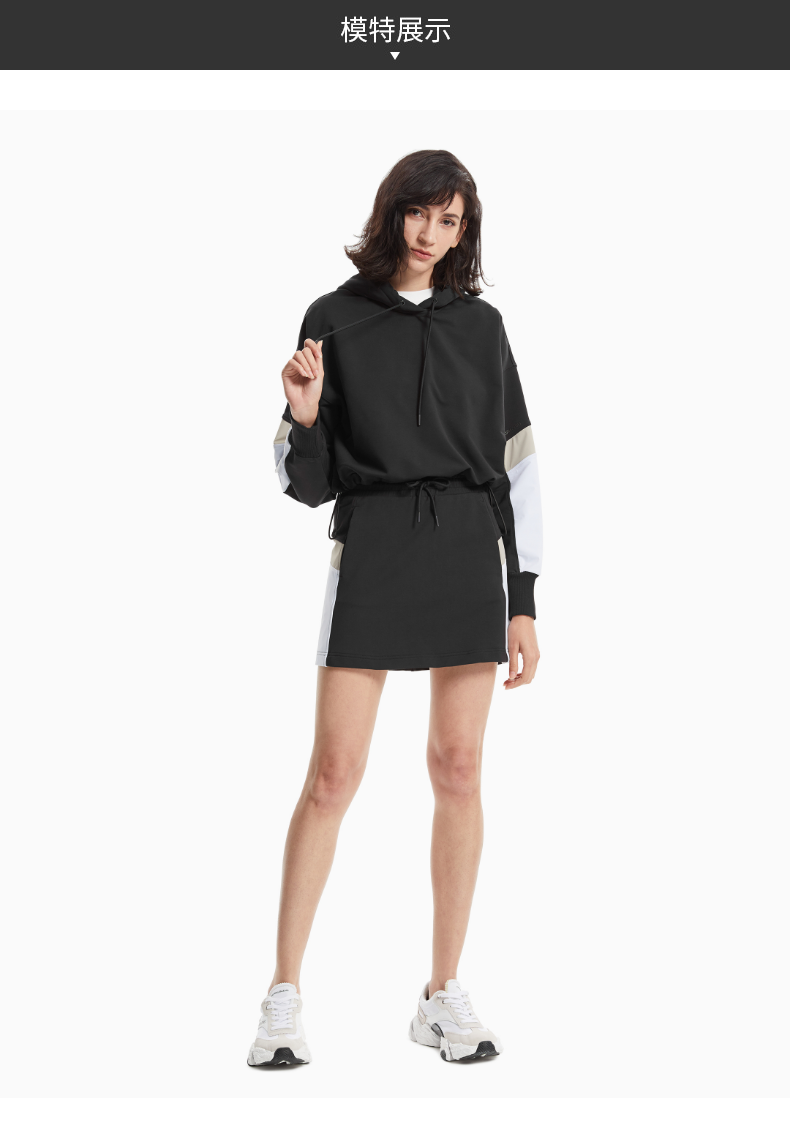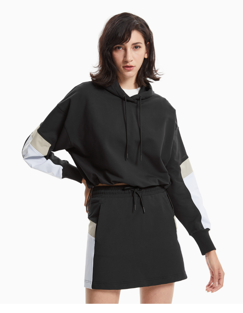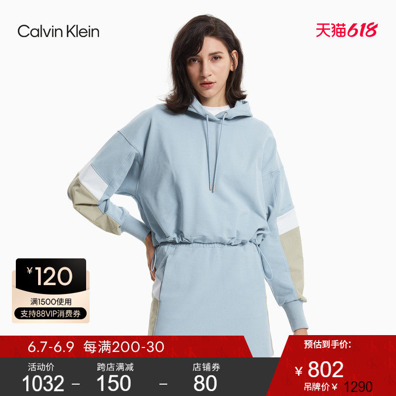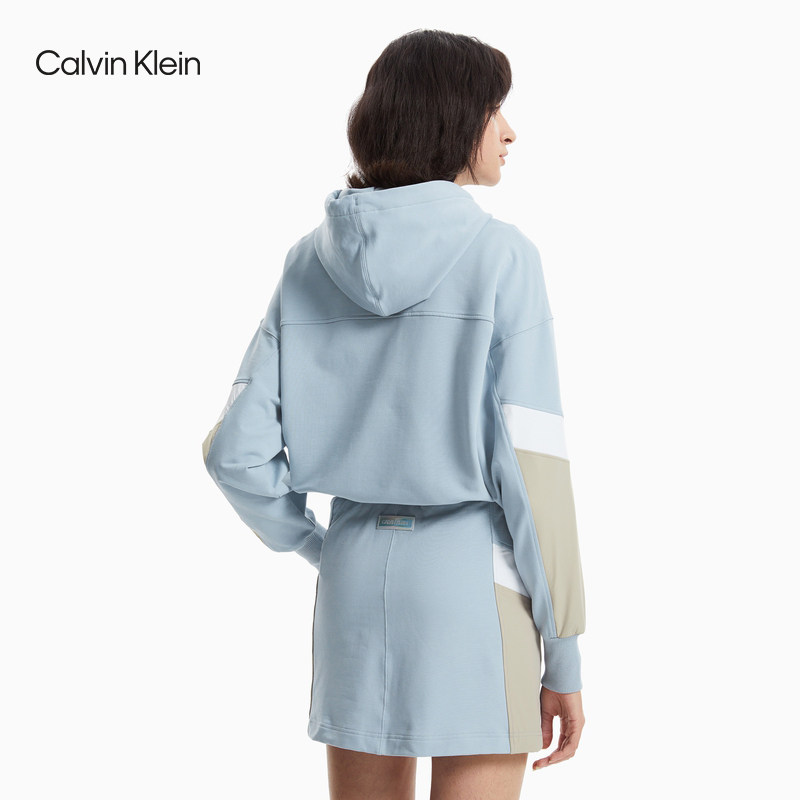 CK Jeans 2021春夏新款女装连帽抽绳套头拼接设计长袖卫衣J217636