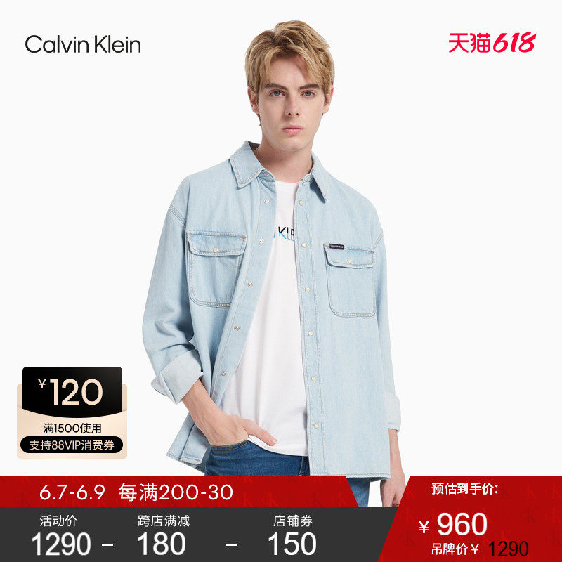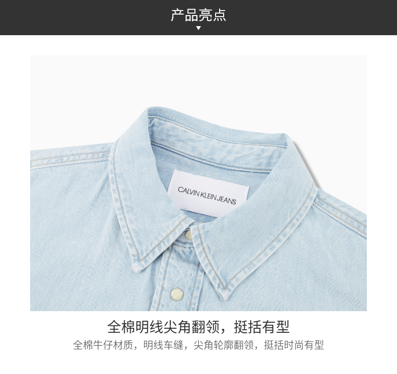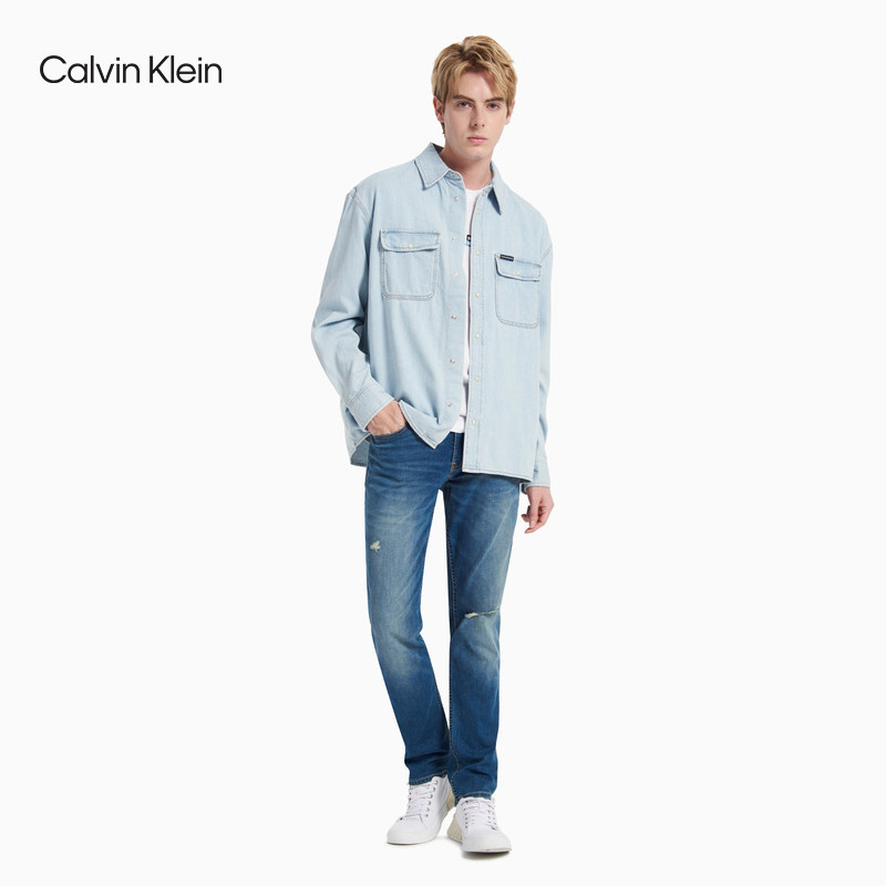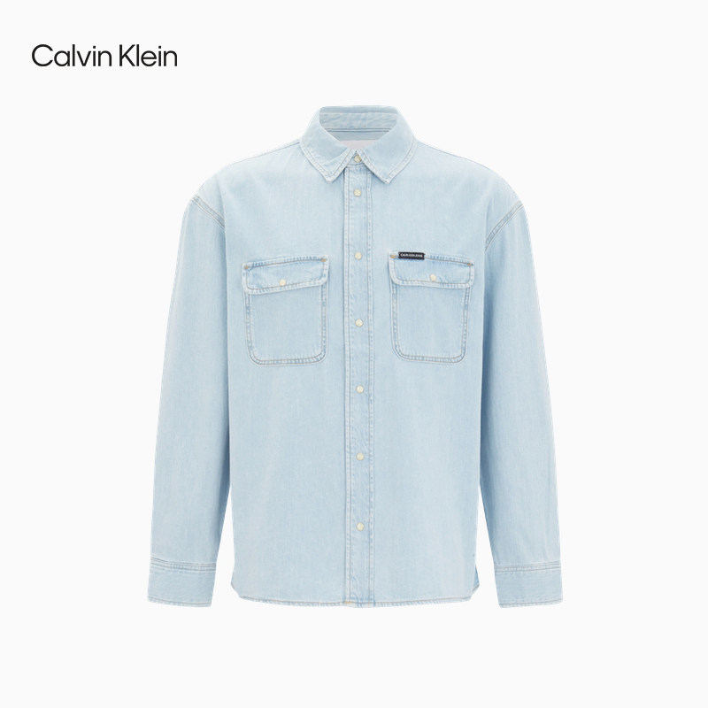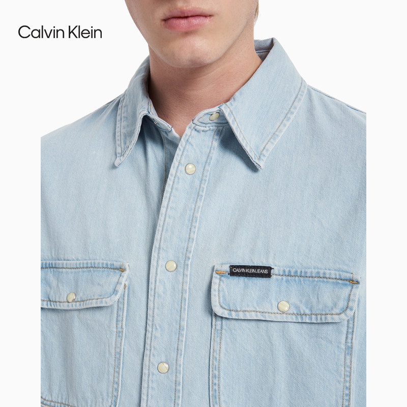 CK Jeans 2021春夏新款男装全棉牛仔揿扣门襟翻领长袖衬衫J318036