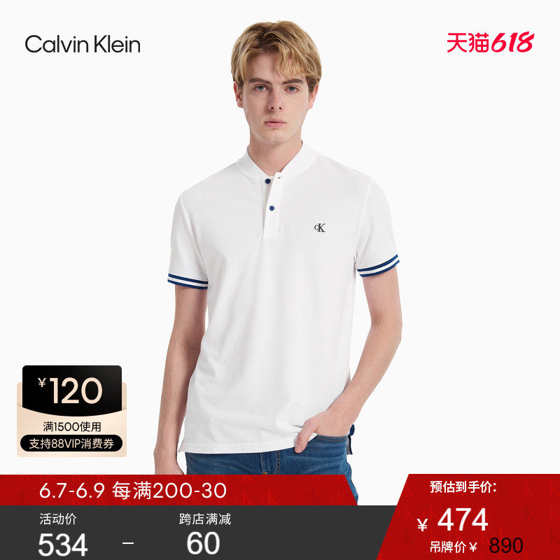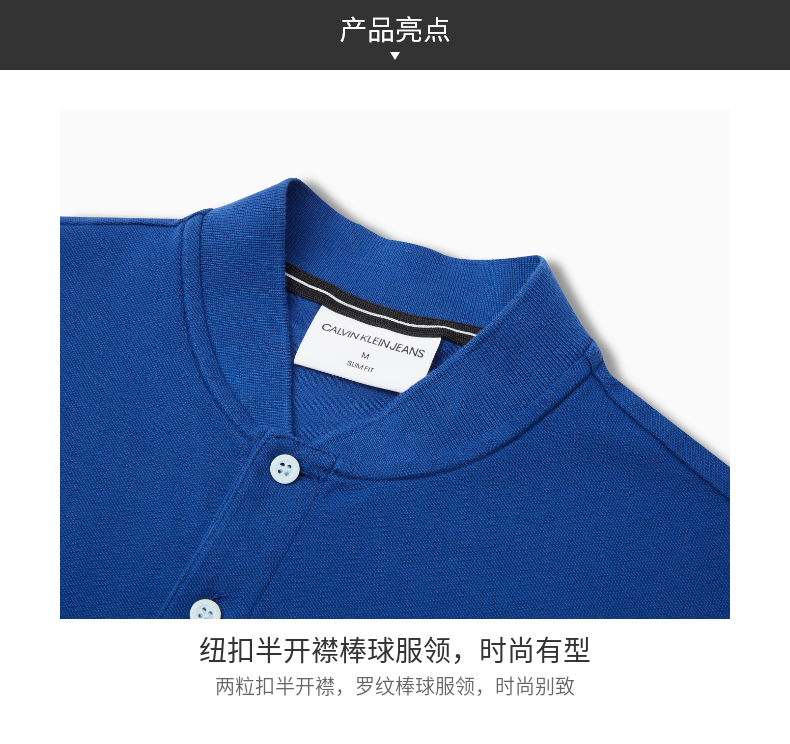 CK Jeans 2021春夏新款男装两粒扣棒球服领针织短袖POLO衫J319927
